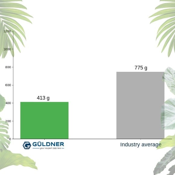 Güldner (green) vs. industry average (grey). At a glance, it is clear how much we are reducing emissions—and thus actively contributing to climate protection.